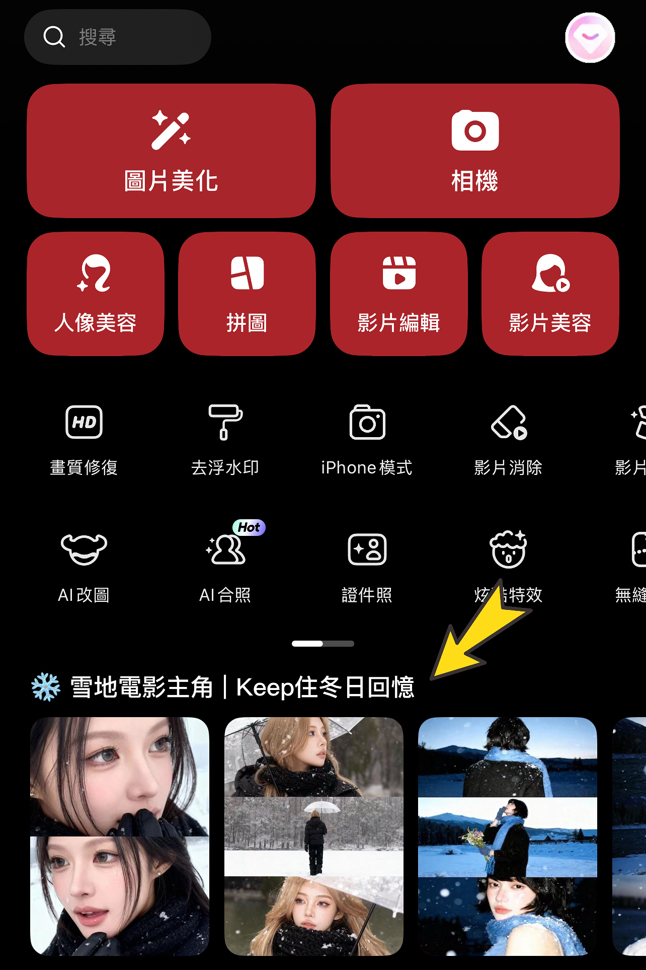 用美圖秀秀(meitu)就可以做到呢個效果!响手機download咗呢個app,襟入去主畫面已經可以見到呢個「雪地電影主角」嘅AI效果,click入其中一個模板,再upload你張相上去就可以生成咁靚嘅相片啦😉